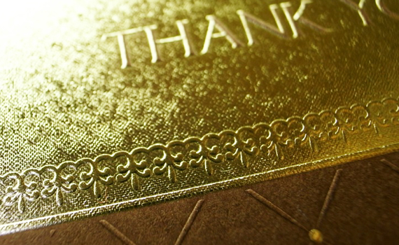 身近な物では名刺やちょっと高級な洋菓子の箱や化粧品の箱などに施すことが出来ます。