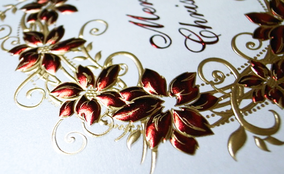 一般的な印刷方法では表現できない金や銀の金属質な表現が出来ます。