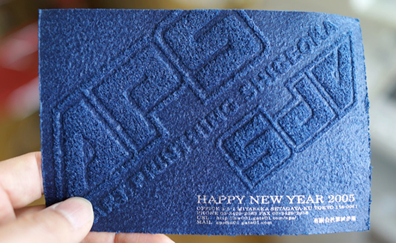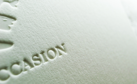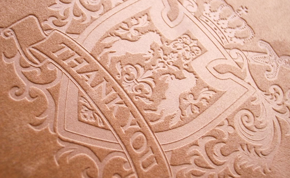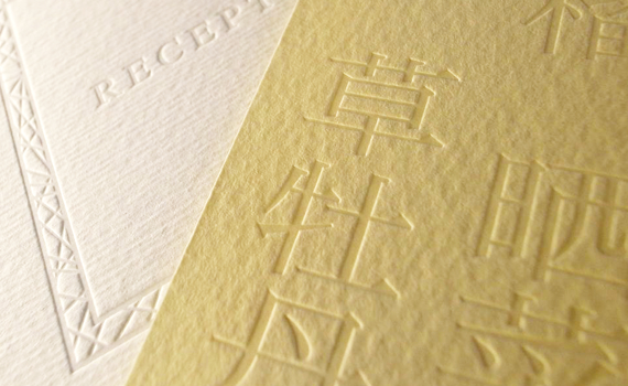 空押しとは文字や絵柄の版を紙などの材料に強くプレスして文字や絵柄の形にへこます加工方法です。